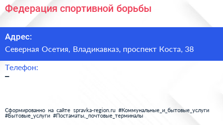 Федерация спортивной борьбы по адресу Северная Осетия, Владикавказ, проспект Коста, 38 в дальнейшем Организация, размещена в следующих категориях: