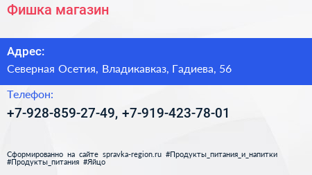Фишка, магазин по адресу Северная Осетия, Владикавказ, Гадиева, 56 в дальнейшем Организация, размещена в следующих категориях: