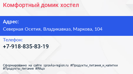 Комфортный домик, хостел по адресу Северная Осетия, Владикавказ, Маркова, 104 в дальнейшем Организация, размещена в следующих категориях: