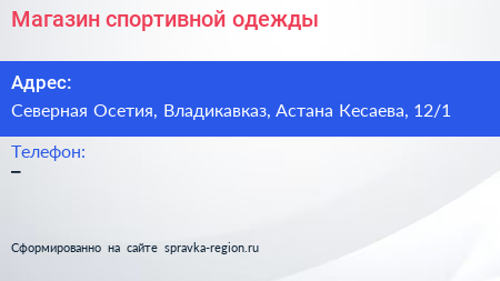 Магазин спортивной одежды по адресу Северная Осетия, Владикавказ, Астана Кесаева, 12/1 в дальнейшем Организация, размещена в следующих категориях: