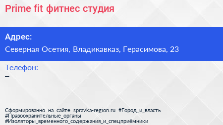 Prime fit, фитнес-студия по адресу Северная Осетия, Владикавказ, Герасимова, 23 в дальнейшем Организация, размещена в следующих категориях: