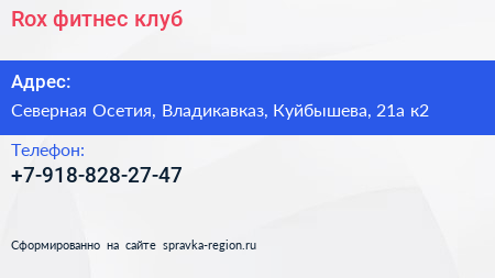 Rox, фитнес-клуб по адресу Северная Осетия, Владикавказ, Куйбышева, 21а к2 в дальнейшем Организация, размещена в следующих категориях:
