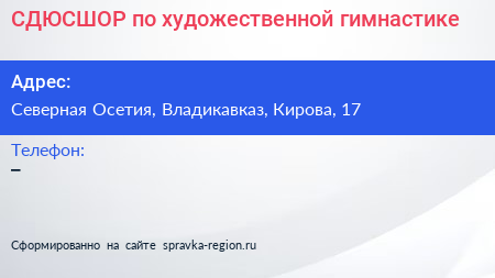 СДЮСШОР по художественной гимнастике по адресу Северная Осетия, Владикавказ, Кирова, 17 в дальнейшем Организация, размещена в следующих категориях: