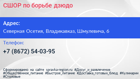 СШОР по борьбе дзюдо по адресу Северная Осетия, Владикавказ, Шмулевича, 6 в дальнейшем Организация, размещена в следующих категориях: