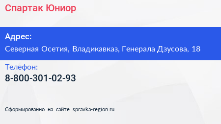 Спартак Юниор по адресу Северная Осетия, Владикавказ, Генерала Дзусова, 18 в дальнейшем Организация, размещена в следующих категориях: