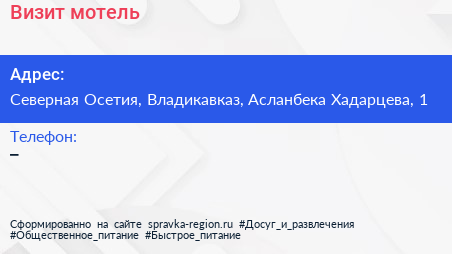 Визит, мотель по адресу Северная Осетия, Владикавказ, Асланбека Хадарцева, 1 в дальнейшем Организация, размещена в следующих категориях: