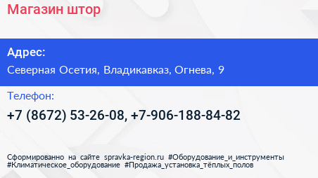 Магазин штор по адресу Северная Осетия, Владикавказ, Огнева, 9 в дальнейшем Организация, размещена в следующих категориях: