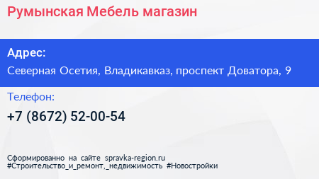 Румынская Мебель, магазин по адресу Северная Осетия, Владикавказ, проспект Доватора, 9 в дальнейшем Организация, размещена в следующих категориях: