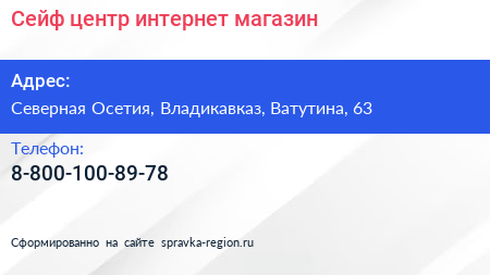 Сейф-центр, интернет-магазин по адресу Северная Осетия, Владикавказ, Ватутина, 63 в дальнейшем Организация, размещена в следующих категориях: