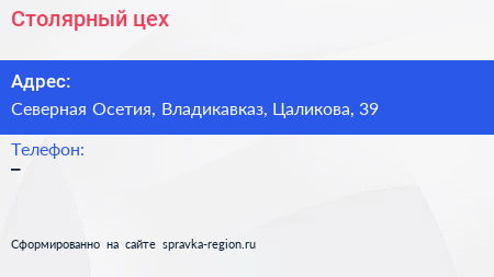 Столярный цех по адресу Северная Осетия, Владикавказ, Цаликова, 39 в дальнейшем Организация, размещена в следующих категориях: