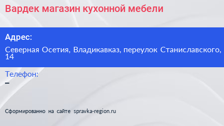 Вардек, магазин кухонной мебели по адресу Северная Осетия, Владикавказ, переулок Станиславского, 14 в дальнейшем Организация, размещена в следующих категориях: