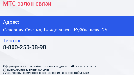 МТС, салон связи по адресу Северная Осетия, Владикавказ, Куйбышева, 25 в дальнейшем Организация, размещена в следующих категориях: