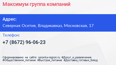 Максимум, группа компаний по адресу Северная Осетия, Владикавказ, Московская, 17 в дальнейшем Организация, размещена в следующих категориях: