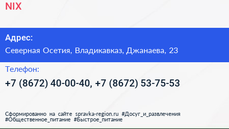 NIX по адресу Северная Осетия, Владикавказ, Джанаева, 23 в дальнейшем Организация, размещена в следующих категориях: