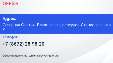 OFFice по адресу Северная Осетия, Владикавказ, переулок Станиславского, 5 в дальнейшем Организация, размещена в следующих категориях: