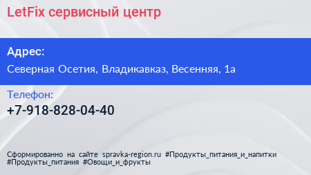 LetFix, сервисный центр по адресу Северная Осетия, Владикавказ, Весенняя, 1а в дальнейшем Организация, размещена в следующих категориях:
