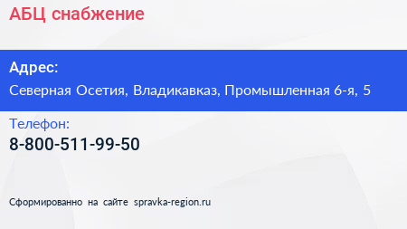 АБЦ снабжение по адресу Северная Осетия, Владикавказ, Промышленная 6-я, 5 в дальнейшем Организация, размещена в следующих категориях: