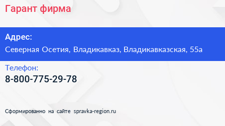 Гарант, фирма по адресу Северная Осетия, Владикавказ, Владикавказская, 55а в дальнейшем Организация, размещена в следующих категориях: