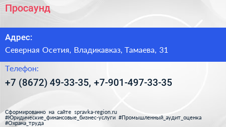Просаунд по адресу Северная Осетия, Владикавказ, Тамаева, 31 в дальнейшем Организация, размещена в следующих категориях: