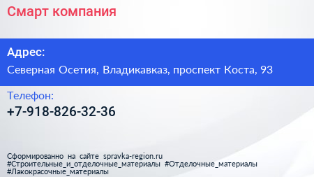 Смарт, компания по адресу Северная Осетия, Владикавказ, проспект Коста, 93 в дальнейшем Организация, размещена в следующих категориях: