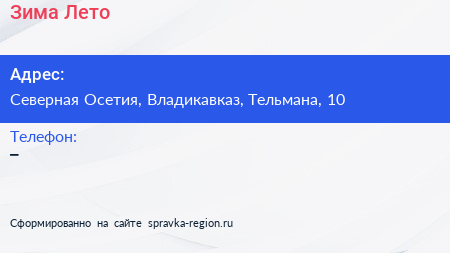 Зима-Лето по адресу Северная Осетия, Владикавказ, Тельмана, 10 в дальнейшем Организация, размещена в следующих категориях: