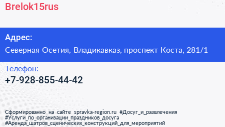 Brelok15rus по адресу Северная Осетия, Владикавказ, проспект Коста, 281/1 в дальнейшем Организация, размещена в следующих категориях: