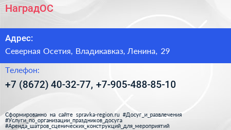 НаградОС по адресу Северная Осетия, Владикавказ, Ленина, 29 в дальнейшем Организация, размещена в следующих категориях: