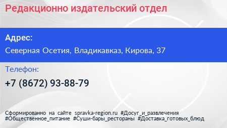 Редакционно-издательский отдел по адресу Северная Осетия, Владикавказ, Кирова, 37 в дальнейшем Организация, размещена в следующих категориях:
