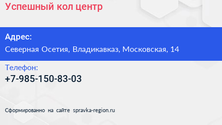 Успешный, кол-центр по адресу Северная Осетия, Владикавказ, Московская, 14 в дальнейшем Организация, размещена в следующих категориях:
