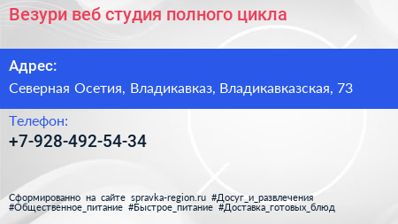 Везури, веб-студия полного цикла по адресу Северная Осетия, Владикавказ, Владикавказская, 73 в дальнейшем Организация, размещена в следующих категориях: