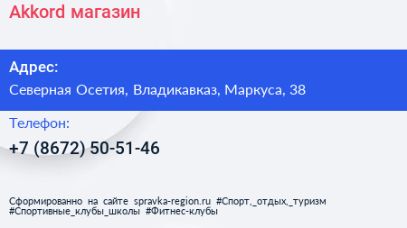 Akkord, магазин по адресу Северная Осетия, Владикавказ, Маркуса, 38 в дальнейшем Организация, размещена в следующих категориях: