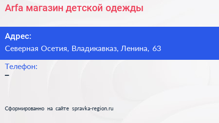 Arfa, магазин детской одежды по адресу Северная Осетия, Владикавказ, Ленина, 63 в дальнейшем Организация, размещена в следующих категориях:
