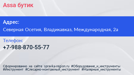 Assa, бутик по адресу Северная Осетия, Владикавказ, Международная, 2а в дальнейшем Организация, размещена в следующих категориях: