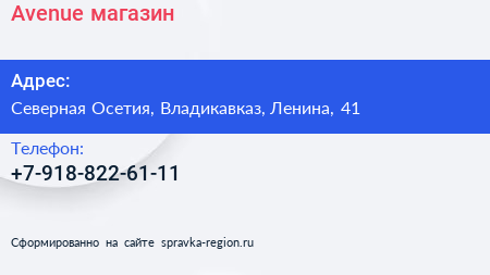 Avenue, магазин по адресу Северная Осетия, Владикавказ, Ленина, 41 в дальнейшем Организация, размещена в следующих категориях: