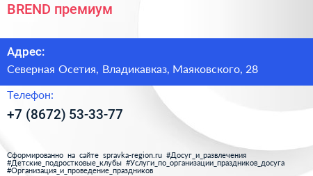 BREND премиум по адресу Северная Осетия, Владикавказ, Маяковского, 28 в дальнейшем Организация, размещена в следующих категориях: