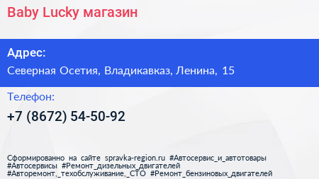 Baby Lucky, магазин по адресу Северная Осетия, Владикавказ, Ленина, 15 в дальнейшем Организация, размещена в следующих категориях: