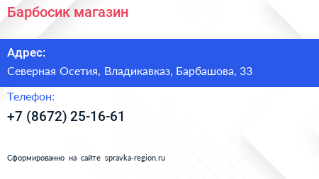 Барбосик, магазин по адресу Северная Осетия, Владикавказ, Барбашова, 33 в дальнейшем Организация, размещена в следующих категориях: