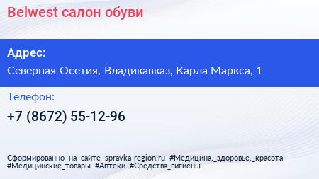 Belwest, салон обуви по адресу Северная Осетия, Владикавказ, Карла Маркса, 1 в дальнейшем Организация, размещена в следующих категориях: