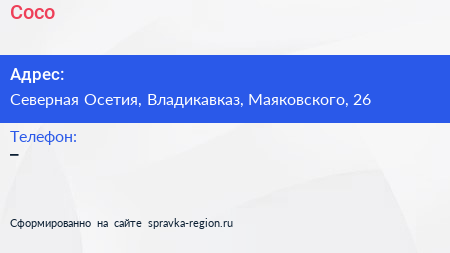 Coco по адресу Северная Осетия, Владикавказ, Маяковского, 26 в дальнейшем Организация, размещена в следующих категориях: