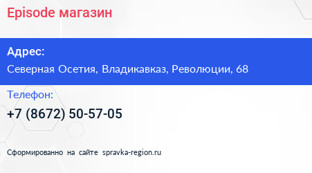 Episode, магазин по адресу Северная Осетия, Владикавказ, Революции, 68 в дальнейшем Организация, размещена в следующих категориях: