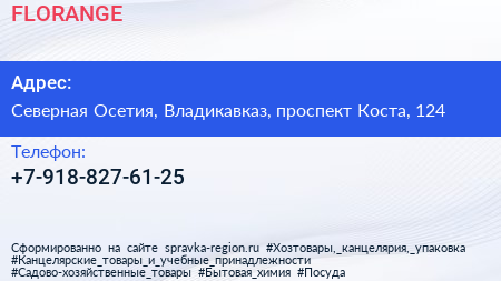 FLORANGE по адресу Северная Осетия, Владикавказ, проспект Коста, 124 в дальнейшем Организация, размещена в следующих категориях: