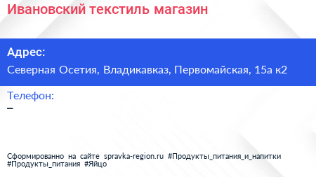 Ивановский текстиль, магазин по адресу Северная Осетия, Владикавказ, Первомайская, 15а к2 в дальнейшем Организация, размещена в следующих категориях: