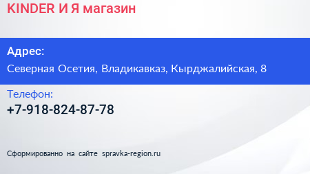 KINDER И Я, магазин по адресу Северная Осетия, Владикавказ, Кырджалийская, 8 в дальнейшем Организация, размещена в следующих категориях: