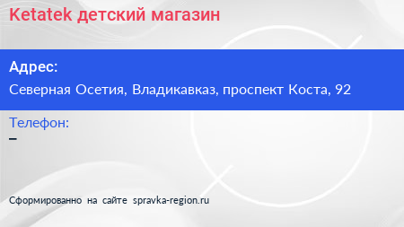 Ketatek, детский магазин по адресу Северная Осетия, Владикавказ, проспект Коста, 92 в дальнейшем Организация, размещена в следующих категориях: