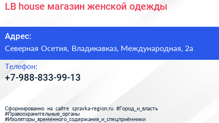LB house, магазин женской одежды по адресу Северная Осетия, Владикавказ, Международная, 2а в дальнейшем Организация, размещена в следующих категориях: