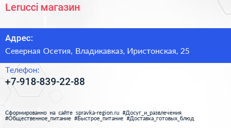 Lerucci, магазин по адресу Северная Осетия, Владикавказ, Иристонская, 25 в дальнейшем Организация, размещена в следующих категориях: