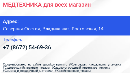 МЕДТЕХНИКА для всех!, магазин по адресу Северная Осетия, Владикавказ, Ростовская, 14 в дальнейшем Организация, размещена в следующих категориях: