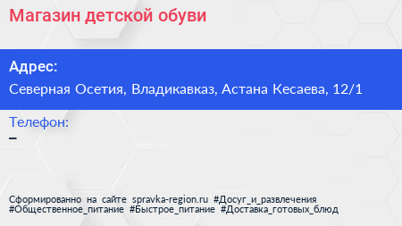 Магазин детской обуви по адресу Северная Осетия, Владикавказ, Астана Кесаева, 12/1 в дальнейшем Организация, размещена в следующих категориях:
