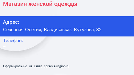 Магазин женской одежды по адресу Северная Осетия, Владикавказ, Кутузова, 82 в дальнейшем Организация, размещена в следующих категориях: