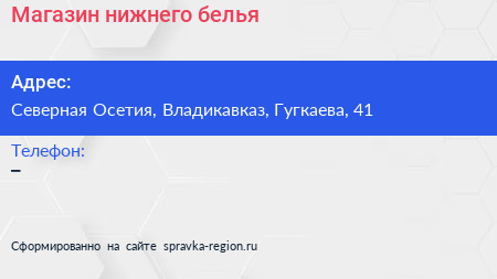 Магазин нижнего белья по адресу Северная Осетия, Владикавказ, Гугкаева, 41 в дальнейшем Организация, размещена в следующих категориях: